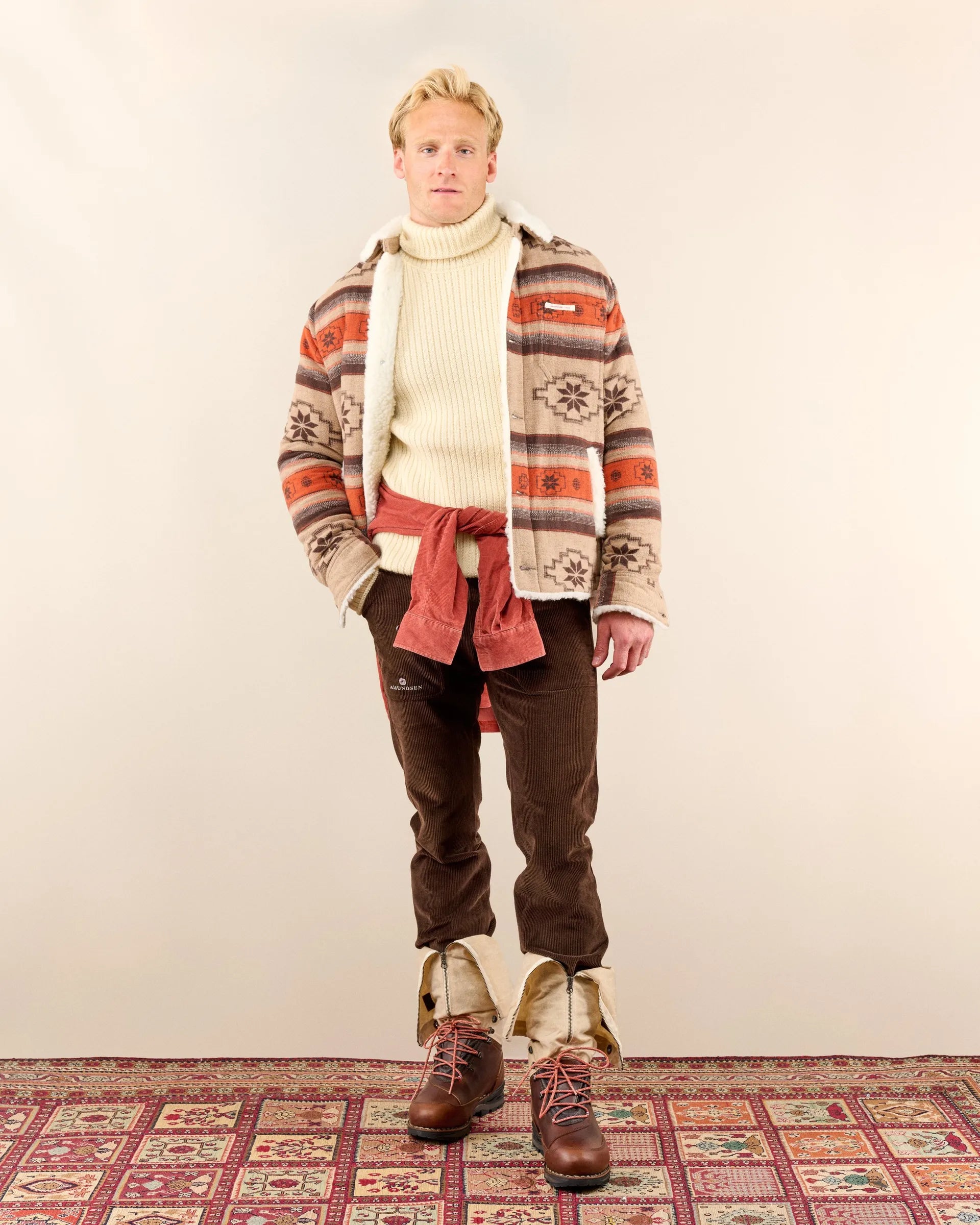 Part of the Fall 2025 Amundsen Sports collection we love the story that this textile tells about Norwegian weaving traditions. Comfortable unisex overshirt crafted from soft double-sided brushed cotton with a cosy wool fleece lining. Features the traditional Norwegian Åkle geometric pattern inspired by Østfold, Roald Amundsen's birthplace. Perfect as a versatile layering piece for autumn adventures.