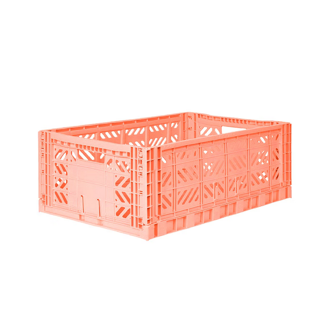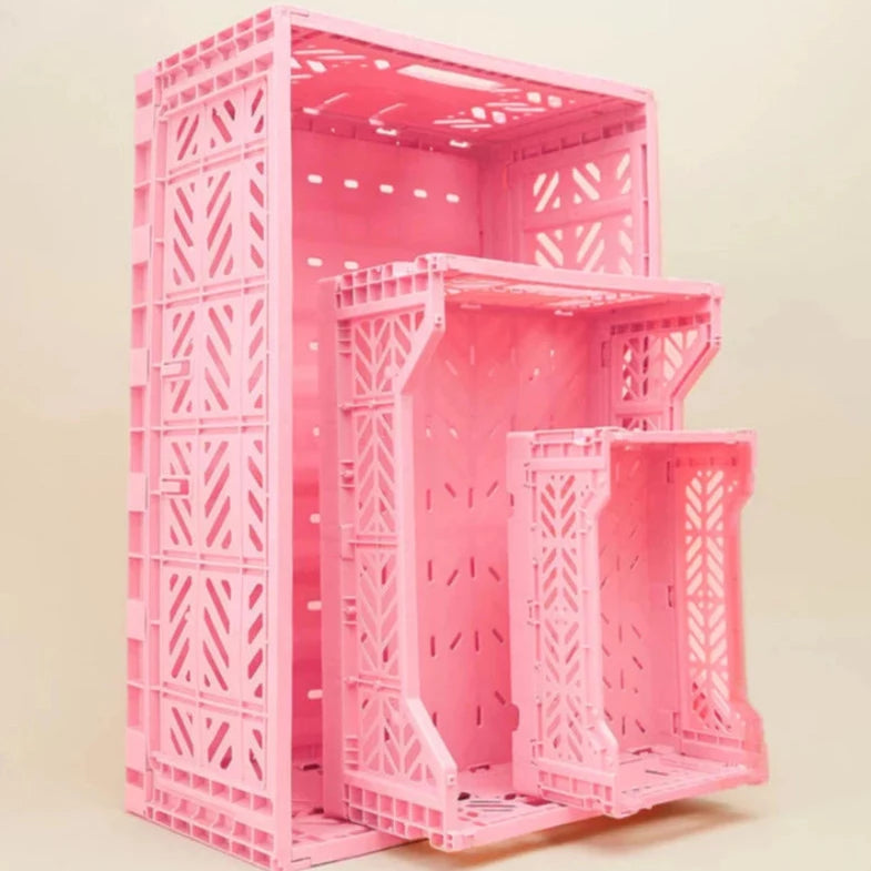 These color crates are characterized by functional design, industrial aesthetics and a wide range of joyful colors. The compact, stackable containers are great for storing all types of items from toys to office supplies, and their airy, perforated design makes them perfect for food and bathroom accessories, too. Choose your own favorite Colour crate or combine different tones freely together!