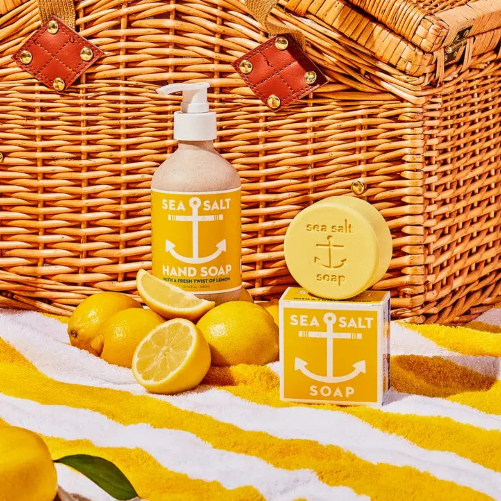 Sail into brighter days with an incredibly refreshing exfoliation and a boost of the perfect summer citrus. The Sea Salt Lemon Soap features our classic sea salt scrubbers with a twist of lemon citrus oils. Its zesty fragrance is warm and uplifting, like sunshine in a box. These beautiful bars are made in small batches with all-natural ingredients.