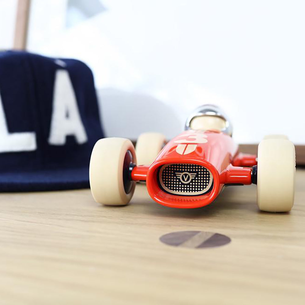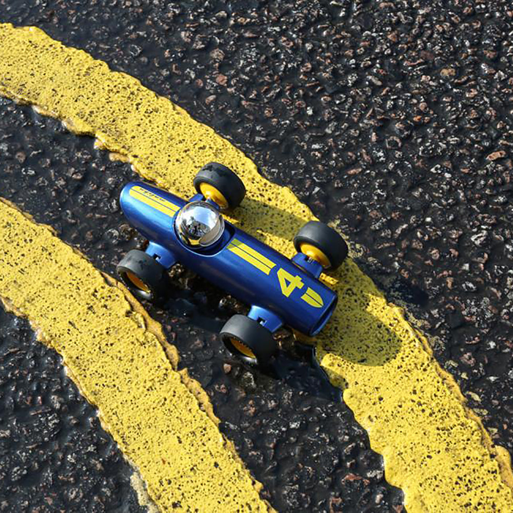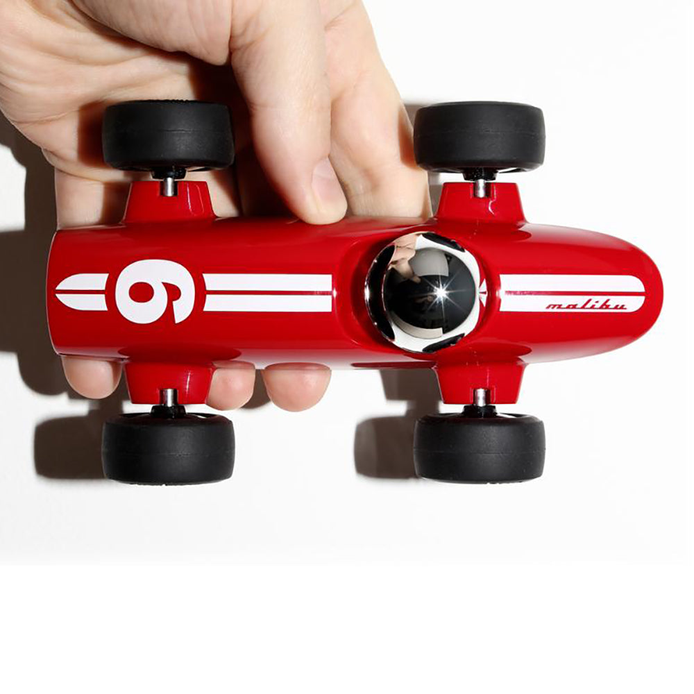 On your marks… get set… go! You can almost hear the roar of the engine as Malibu stands poised, ready for the race. Drawing inspiration from the early Maserati Formula 1 cars of the 20s and 30s but with a modern Playforever twist, the Malibu racing car is built for speed. With a pure and simple cigar tube chassis, long nose and wide open mouth, its shape is sleek and stream-lined whilst its wide profile, low-to-the-ground rubber tires give it a bold confidence to rival all others at the starting grid.