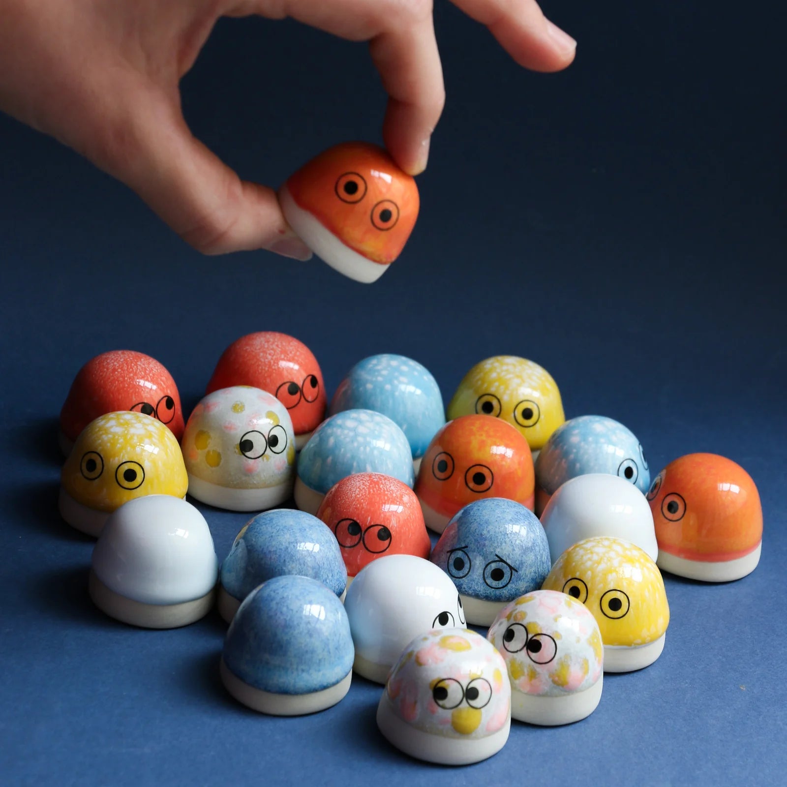The Dot is the smallest member of the Studio Arhoj Familia collection. Each Dot is unique, hand thrown, glazed, decorated and low-fired in the kiln three times. They will be a lovely, discreet character detail in your home.